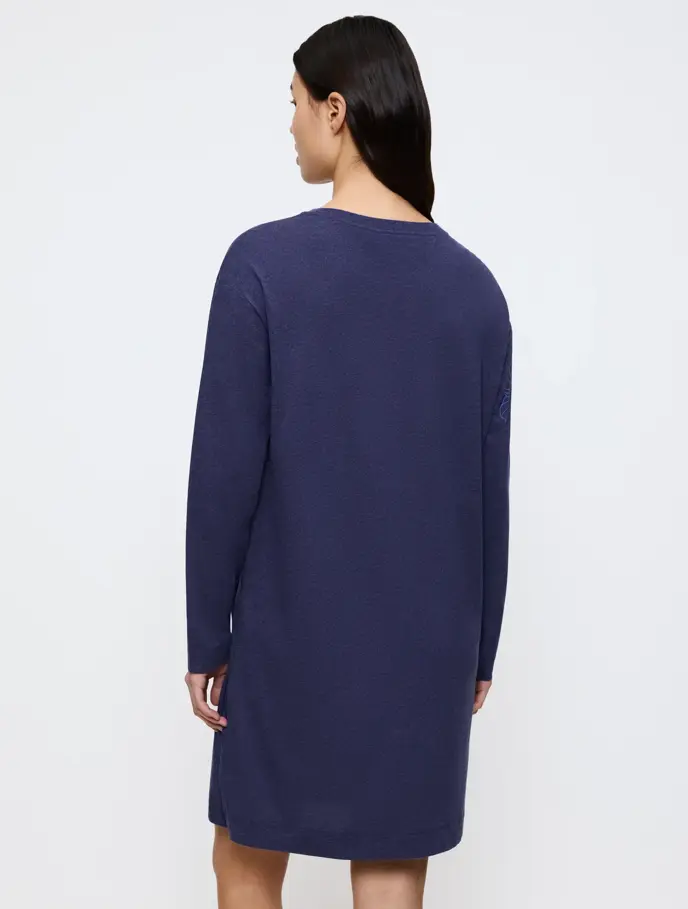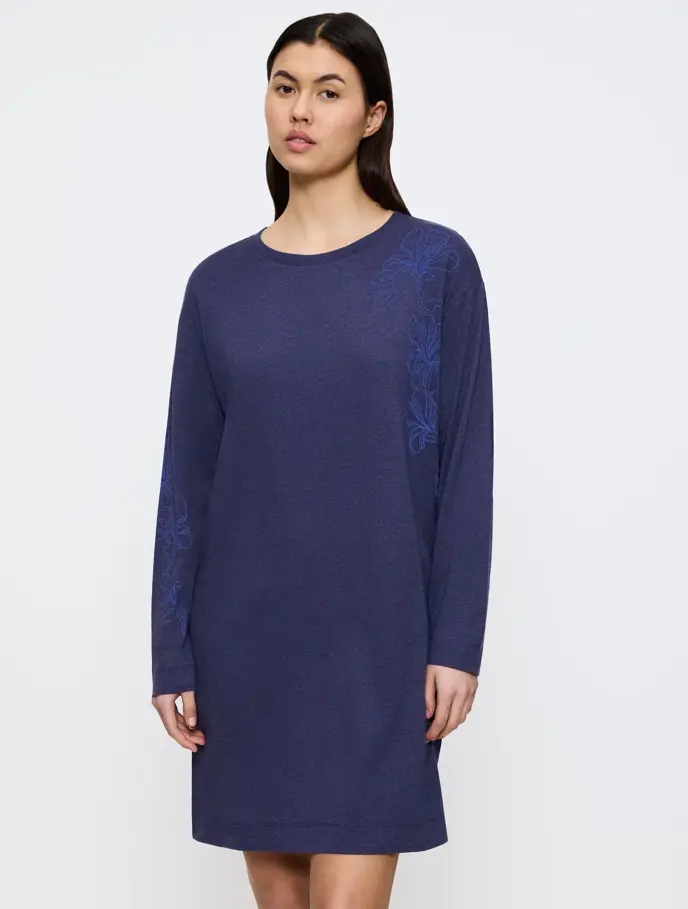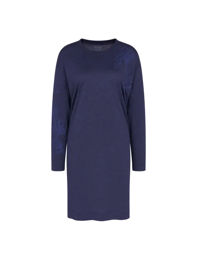 Conforto instantâneo. A camisa de dormir de manga comprida que irá sempre ansiar vestir depois de um dia agitado. Tecido suave e respirável, com punhos e bainhas largos.