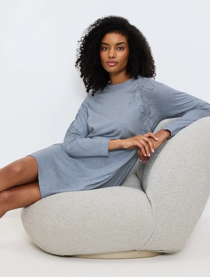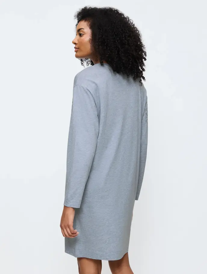 Conforto instantâneo. A camisa de dormir de manga comprida que irá sempre ansiar vestir depois de um dia agitado. Tecido suave e respirável, com punhos e bainhas largos.