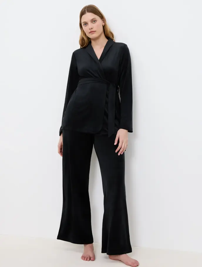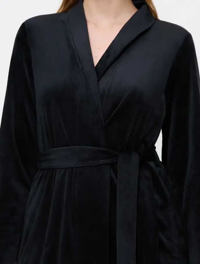 Um tecido suave de veludo e um ajuste à medida tornarão este robe curto numa das suas peças de loungewear favoritas.